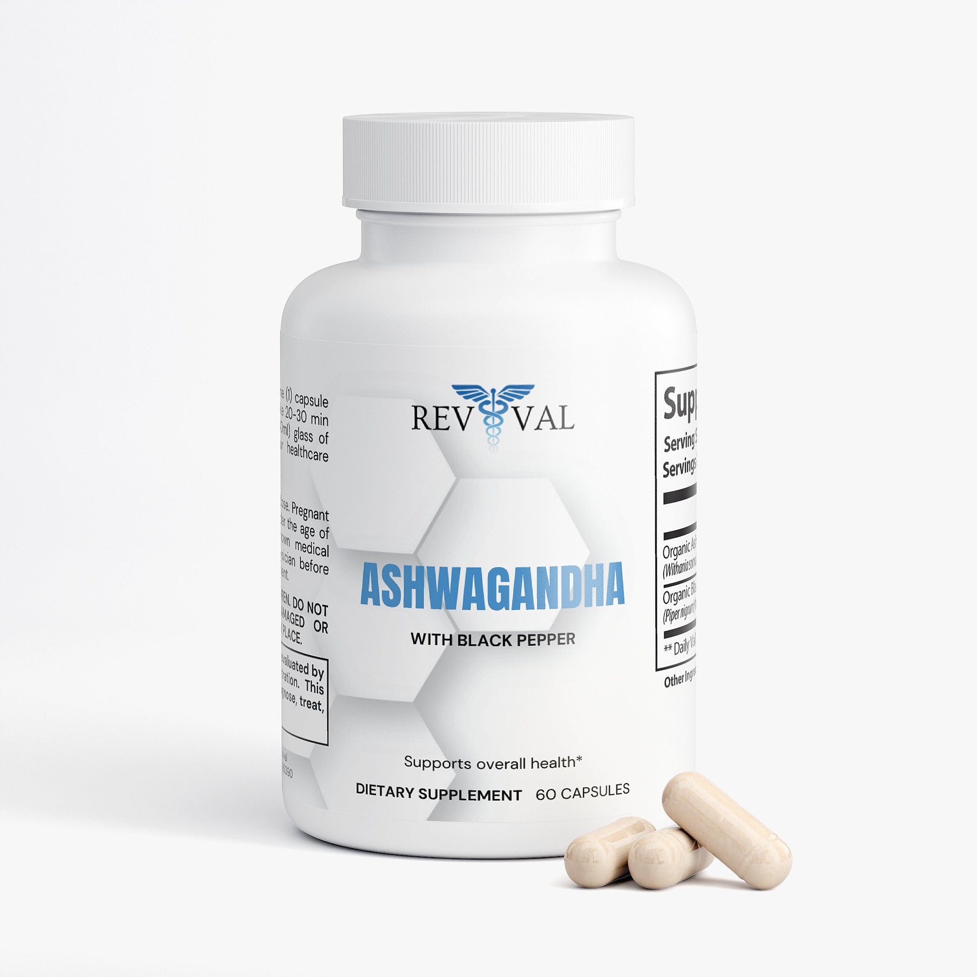 Ingredients: Organic Ashwagandha (Withania somnifera)(root), Organic Black Pepper (Piper nigrum)(fruit), pullulan capsules.